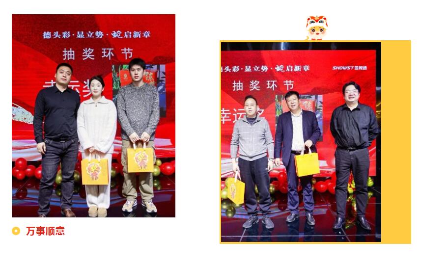 節目間隙穿插的抽獎與游戲環節,隨著抽獎嘉賓一次次揭曉中獎名單,現場氣氛不斷被推向高潮。整個年會現場洋溢著歡樂與溫馨,大家在歡樂的氛圍中感受到了滿滿的幸福感和歸屬感。