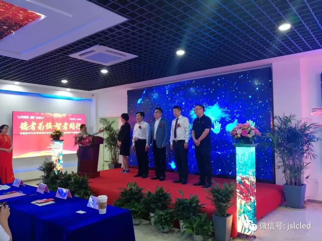 江蘇亮彩電子有限公司總經(jīng)理章九余先生、利亞德渠道中心副總經(jīng)理吳斌先生、今創(chuàng)集團(tuán)(股票代碼603680)董事局主席俞金坤和常州市工商聯(lián)副主席韓紅衛(wèi)女士共同上臺進(jìn)行揭牌和授牌儀式。