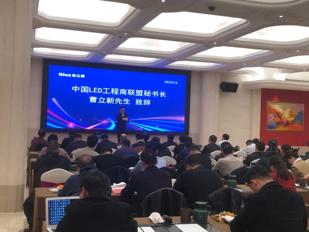 曹立新先生代表中國LED工程商聯盟預祝本次推介會的圓滿召開,希望企業以科技實現進步、以文化促進發展、以團結凝聚智慧、以奮斗創造財富,在激烈的市場競爭中,時刻抓住機遇、開拓進取、大膽創新。